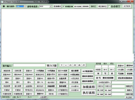 F3 Repair Tools中文版用于查看硬盘信息,还原硬盘设置,查看CAP信息、查看清除初始化SMART,快速强力清零,全盘探险格式化,坏道加P加G,带P格式化,段位格式化,坏道快速修复、坏道慢修复,清除V10.11代重建段位,全盘充零,校验V10伺服测量磁盘测试、通用坏道快修,ALT快速清除等