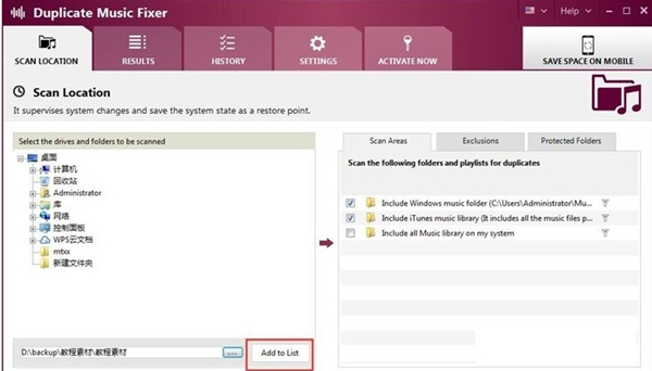 在Duplicate Music Fixer主界面中点击Add to List,将文件夹添加到扫描列表中;