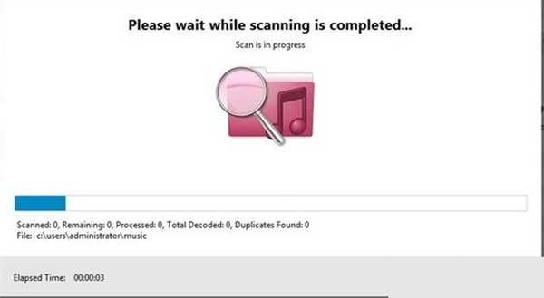 Duplicate Music Fixer正在扫描文件夹中的重复文件。扫描需要一定的时间,请耐心等待;