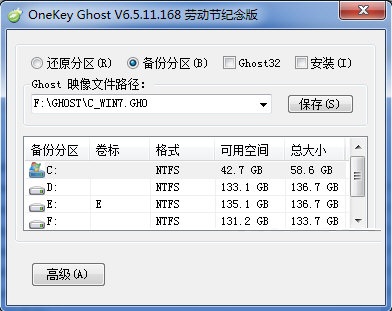 2、程序默认对当前系统所在分区进行备份、还原操作,可选择其他分区[9]