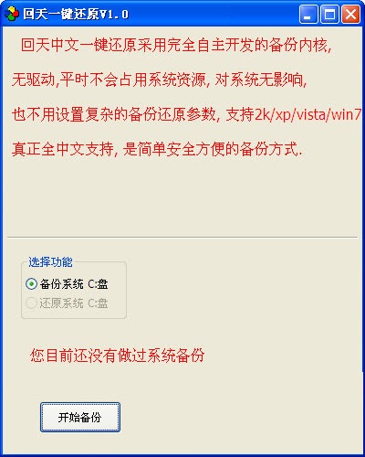 3、不用设置复制的备份还原参数,支持2k/XP/vista/win7;