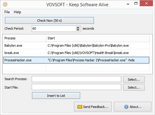 VovSoft Keep Software Alive官方版是一款非常不错的软件运行保护工具,VovSoft Keep Software