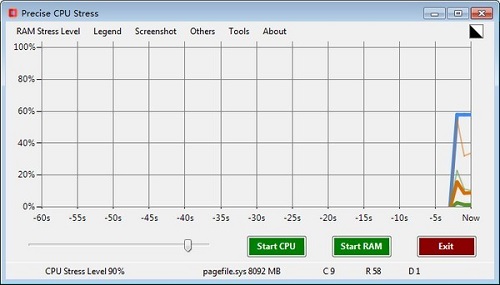 Stress官方版操作简单,打开软件就可以自动显示数据图,支持截图保存,将图表直接保存为png格式,方便发送给自己的朋友,如果你需要查看CPU、RAM变化就可以下载这款软件!