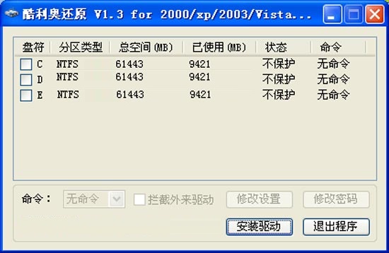 酷利奥还原小助手绿色版支持只保护系统盘,和全盘保护, 支持多硬盘,跨盘卷