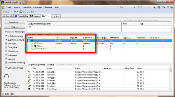 LauschAngriff绿色版是一款简单易用的文件夹和驱动器监视软件,LauschAngriff绿色版可以随时监测驱动和文件夹的异常行为,从而判断电脑是否中毒,流量是否被劫持等问题,软件支持检查本地文件夹和网络驱动器的异常举动,通过对磁盘的分析,软件最大的特点就是不要安装,下载即可使用,用完即可删除。
