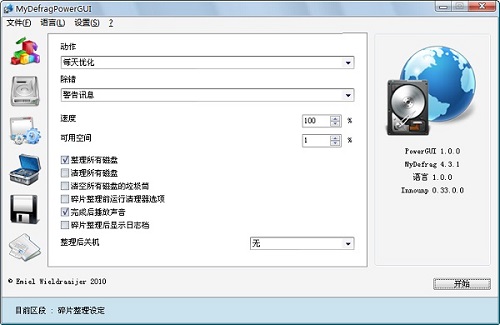 MyDefragPowerGUI电脑版是一款图形操作接口的磁盘重组工具,内建的多国语言,包含简繁体中文语言。非常好用的一款磁盘工具软件。