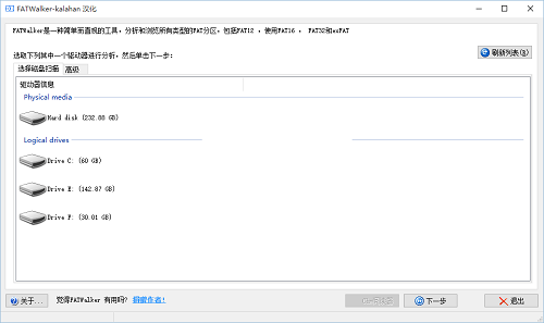 FATWalker中文版是一款针对FAT分区内的数据进行查看的硬盘分析工具,FATWalker中文版支持的具体类型有很多个,可以满足不同用户的使用需求,包括最常见的FAT32、以及FAT16,现在此工具已经支持对FAT12类型进行浏览,用户需要注意的是,此工具不支持扫描其它类型的电脑系统分区盘。