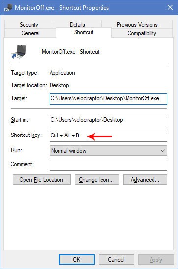 off”,首先,右键单击.exe文件并选择>创建快捷方式。(或者只是使用桌面选项的创建快捷方式)接下来,右键单击快捷方式文件并选择>属性。将鼠标放在>快捷键:字段中,该字段应该是“None”,然后单击键盘快捷键,例如[Ctrl]+[Alt]+[B]。点击>确认。