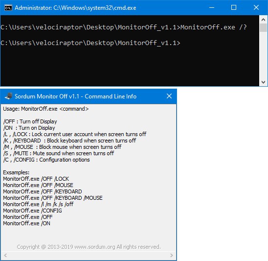 Sordum Monitor Off支持CMD(命令行)
