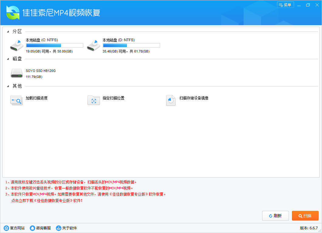 佳佳索尼MP4视频恢复软件官方版是款针对索尼相机的所有型号打造的MP4视频恢复工具。佳佳索尼MP4视频恢复软件官方版拥有碎片重组技术,完美恢复索尼微单、单反相机、摄像机拍摄的MP4格式视频,这款软件功能全面快速高效,能够快速帮助用户恢复视频文件,可以让视频恢复更完美。
