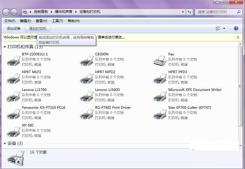 1、打开控制面板--硬件和声音--设备和打印机,选择添加打印机