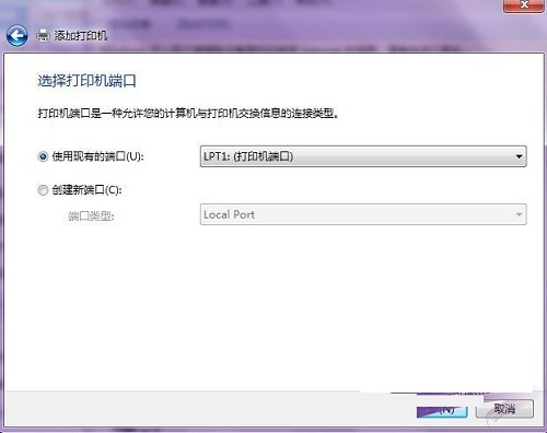 2、选择添加本地打印机驱动,选择打印机端口号LPT1,点击下一步