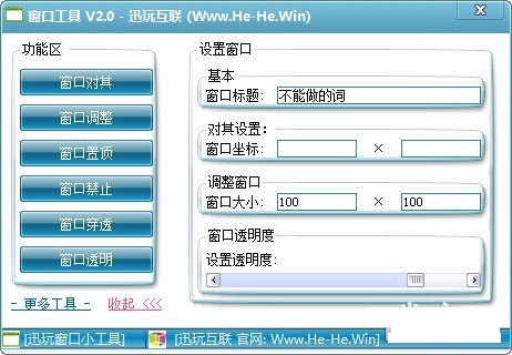 迅玩互联窗口工具官方版是一款使用简单方便的多窗口控制工具,迅玩互联窗口工具官方版可以自行对窗口的大小、透明度等等进行调节,是大家在打游戏、看电视时的好帮手,可以同时进行使用,支持多窗口操作模式。