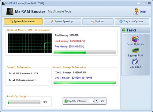 如果可用内存比输入的值时,的Mz RAM的助推器将尝试优化您的RAM。