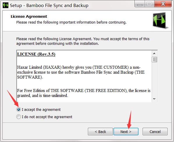1、双击安装Haxar Bamboo File Sync and Backup最新版文件,进入安装界面,点击next