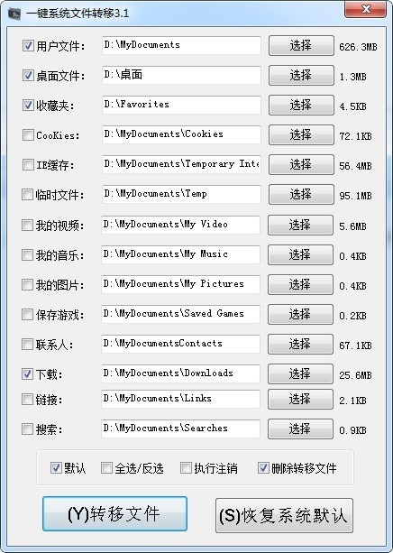 3、支持用户文件、桌面文件、收藏夹、cookies、IE缓存、临时文件等电脑文件转移