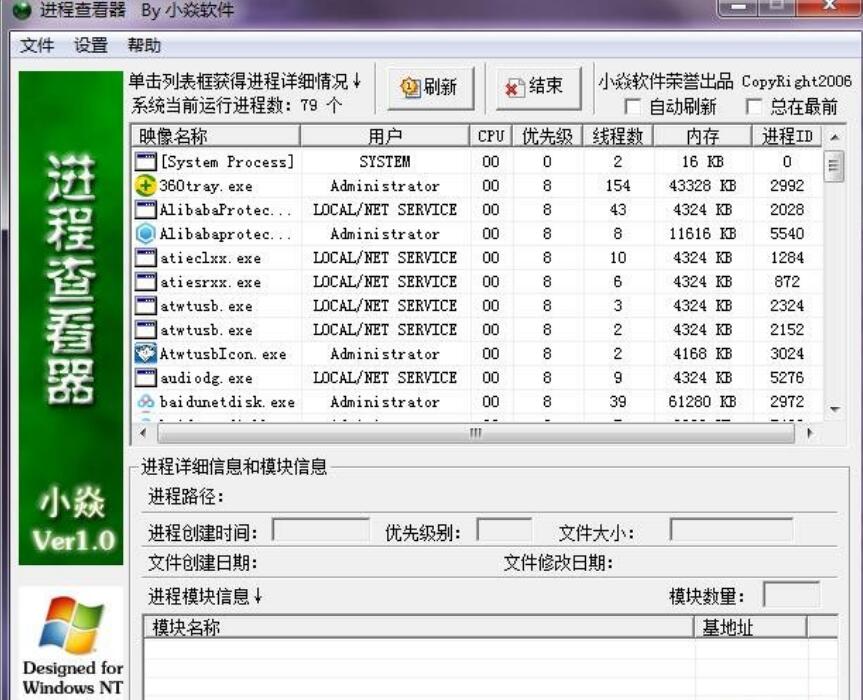 小焱进程查看器最新版是一款界面简洁友好,功能强劲实用的进程查看软件,小焱进程查看器最新版能够对电脑进程进行查询,查询后可以查看引用模块、结束进程等操作,还可以通过工具对其中任意进程强制结束,非常便捷实用。