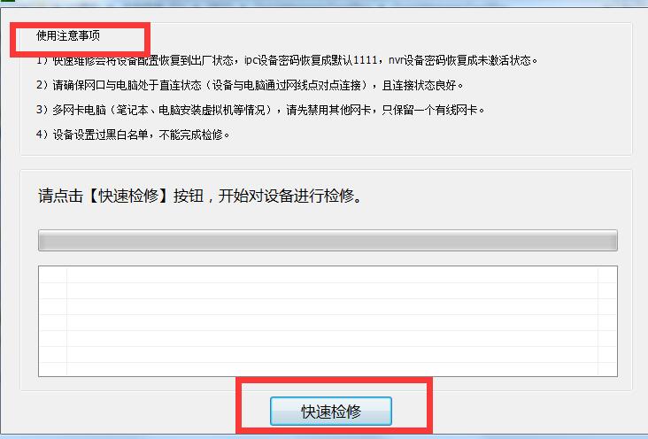 1、开始检修:运行软件,点击【快速检修】按钮,点击按钮之前请仔细阅读【使用注意事项】(如图)。