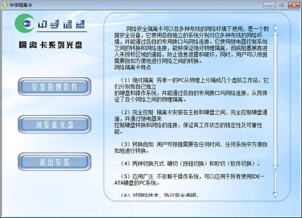 (1)绝对隔离将单一的PC从物理上分隔成几个虚拟工作站,它们分别有自己独立的硬盘和操作系统,并能通过各自的专用接口与网络连接,从而保证了各个网络之间的物理隔离。