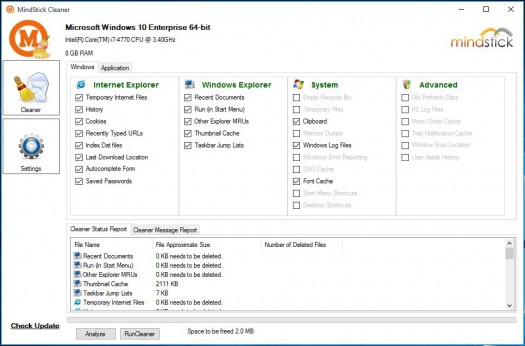 你不需要任何额外的软件来使用记MindStick Cleaner。Mindstick Cleaner是独立软件。唯一的安装要求是.NET
