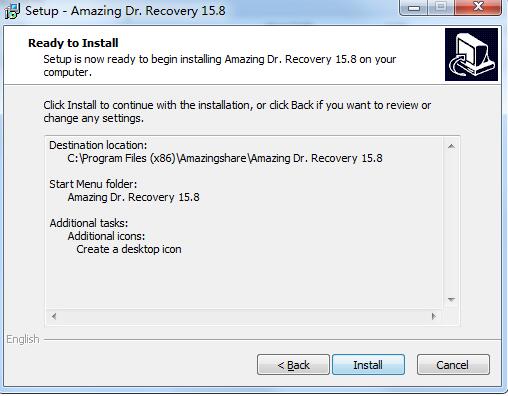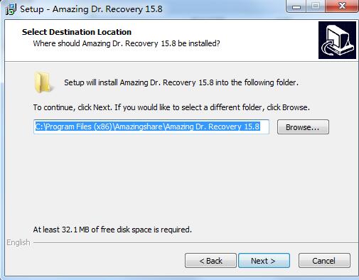 3、选择安装目的地,默认的是C:\Program Files\Amazingshare\Amazing Dr. Recovery 15.8,可以点browse修改