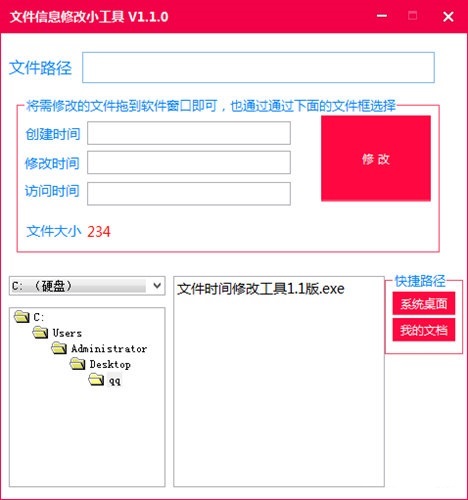 文件信息修改小工具官方版是一款体积小巧、便捷、实用的修改文件时间的工具,文件信息修改小工具官方版除了修改时间之外好像也不能修改别的信息,软件实现拖放修改,操作简单,也可以通过文件框选择修改!