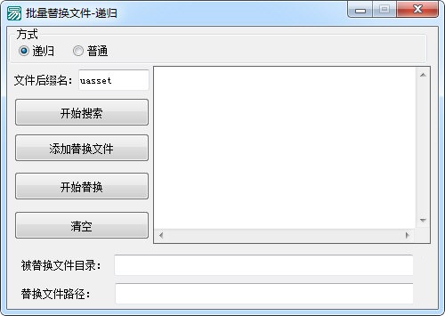 递归批量替换文件绿色版是一款用来查找同名文件替换的辅助软件,递归批量替换文件绿色版界面整洁,使用者能够输入文件后缀名,这样可以帮助用户搜索文件时更加的准确。该软件能够把文件夹或文件搜索出来后会显示在软件右侧,可以同时选择一个或多个文件来进行替换,非常的便捷!