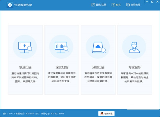 1、快捷数据恢复软件支持多种设备:支持硬盘、U盘、移动硬盘、SD卡、内存卡、相机卡、手机卡等多种设备