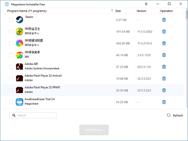 Magoshare Uninstaller正式版是一款设计非常专业的卸载清理软件,Magoshare Uninstaller正式版拥有清晰美观的操作界面,功能强劲实用,可以帮助您逐个或批量轻松卸载程序并删除所有剩余物,使用非常方便便捷。