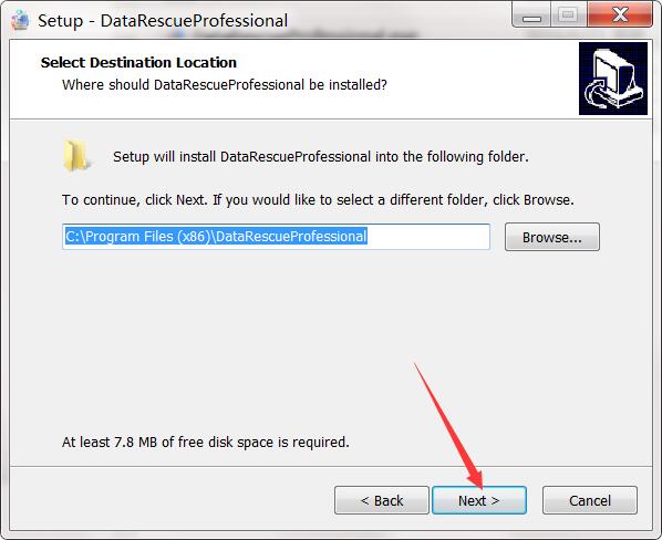 1、双击“DataRescueProfessional.exe”,选择软件安装目录,默认为“C:Program FilesData Rescue”,可以点browse修改