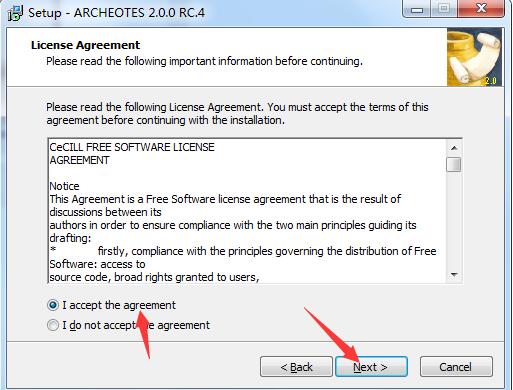 1、双击打开ARCHEOTES 2.0.0 RC.4 Setup.exe文件,进入欢迎界面,点next
