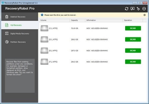 Pro官方版是款很容易操作且功能很强大的数据恢复软件,该软件能够能够帮助用户恢复各种类型的数据文件。RecoveryRobot