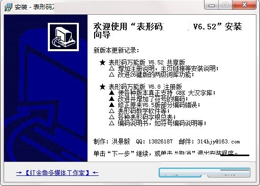 1、下载解压完成后,双击“表形码万能版汉字输入法.exe”进入安装界面。