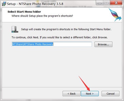 2、设置软件的安装目的地,默认的是C:Program Files (x86)NTShareNTShare Photo Recovery,想修改点browse