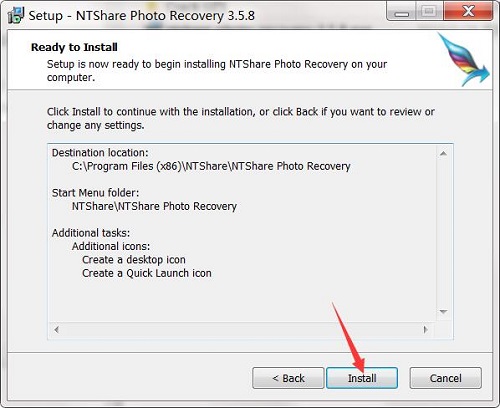 5、确认NTShare Photo Recovery安装信息,点击install开始安装