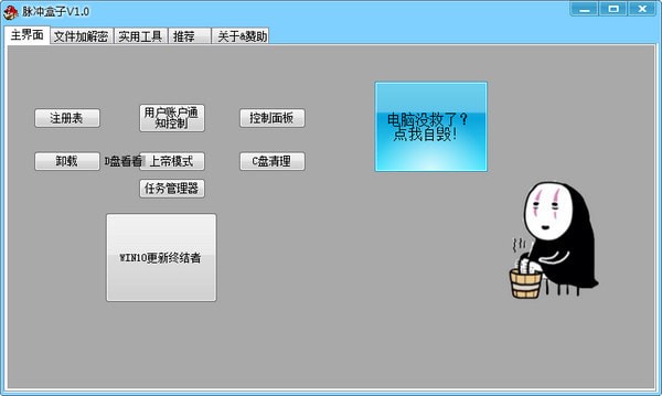 脉冲盒子最新版是一款功能十分强大的电脑工具合集软件,脉冲盒子最新版界面简洁大方,功能强劲实用,其融入C#与mysql的登录注册功能,文件加密解密功能,禁止Windows更新功能,16位/32位MD5加密功能,鼠标连点等等.