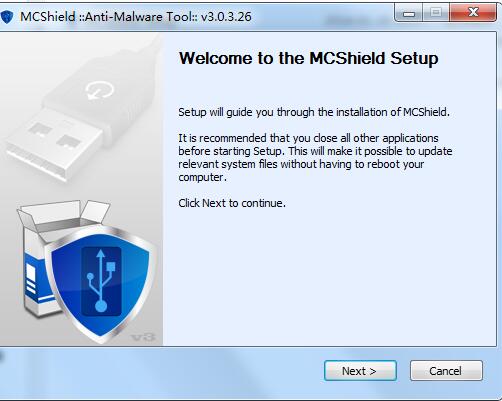 1、解压运行MCShield-Setup.exe文件,进入欢迎界面,点下一步