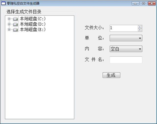 零隐私空白文件生成器正式版是一款功能强大、小巧便携的文件生成工具,零隐私空白文件生成器正式版可以生成任何文件或移动驱动器上的空白文件,而且还可以制定文件体积及其单位,自定义编辑空白内容和名称。