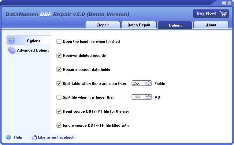 2、支持修复在DBT或FPT域内含有备忘录或二进制数据字段的DBF文件