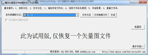 慧龙矢量图文件恢复软件中文版是一款功能强大、体积小巧的矢量图恢复软件,慧龙矢量图文件恢复软件中文版可以帮助用户快速的恢复丢失或是破坏的矢量图文件,软件操作相当方便。各设计人员可以试试本款软件。提示: 不要下载软件到要恢复数据的盘符里,也不要解压文件到要恢复的盘符里,否则可能再次破坏源数据。