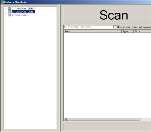 2、点击“scan”按钮,那么Kickass Undelete就会开始扫描了,等扫描结束,使用键入文件名的方式进行筛选。