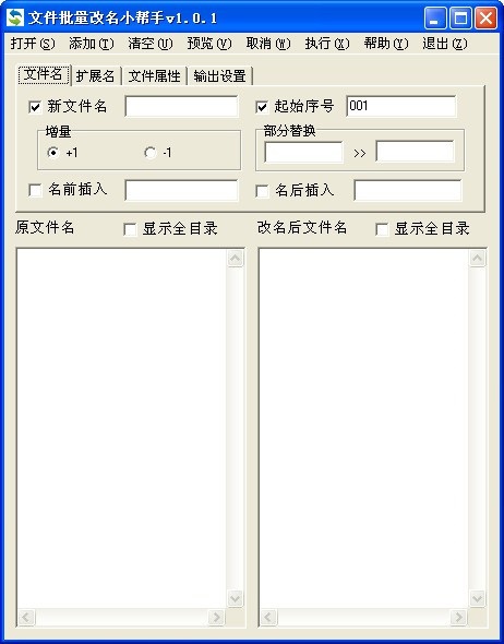 1、添加文件、设定改名规则、进行批量改名,所有功能集成在同一界面实现,易于操作和使用