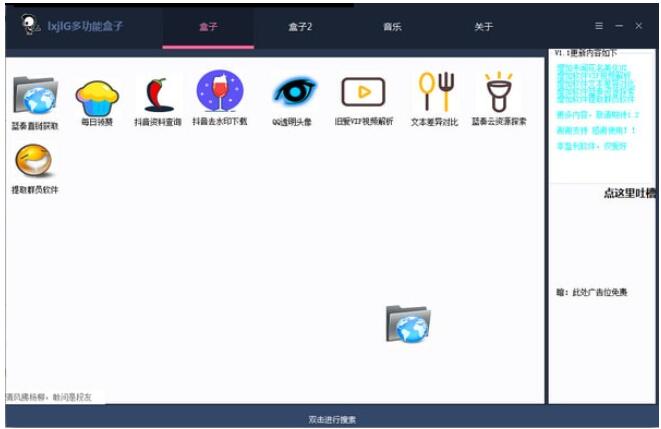 IxjLG多功能盒子官方版是一款功能全面的网络工具箱,软件为用户提供了蓝奏直链获取、每日领赞、抖音资料查询、抖音去水印下载、QQ透明头像制作等。IxjLG多功能盒子官方版功能是相当广泛全面的,操作方式十分简单。