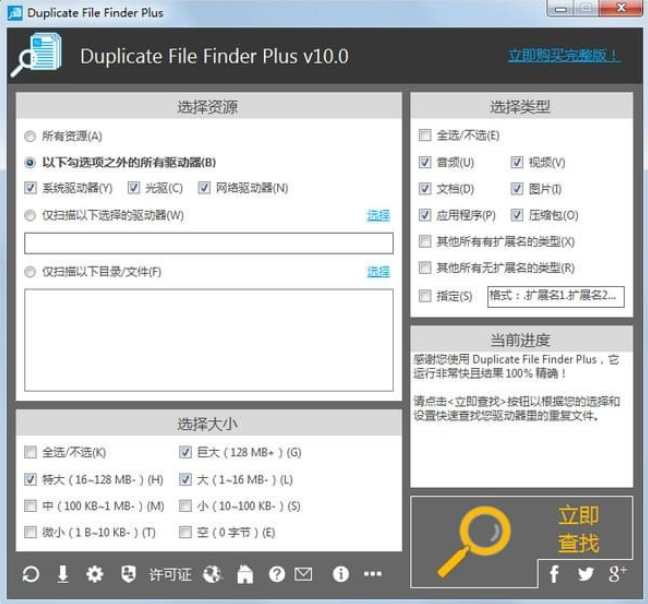 + 灵活的来源:驱动器、文件夹、文件、大小和类型