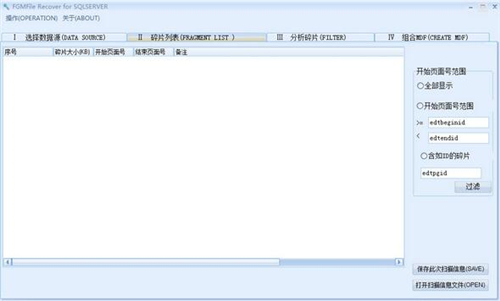 3、扫描完成后,可以直接进行第三步:选择一个扫描到的数据文件,选择后,系统会提示数据文件名,如果是丢失的MDF文件则进行第四步。(扫描完成后,如不当时组合,可以以后直接打开碎片文件进行组合,打开程序直接进行第二步:《2(open