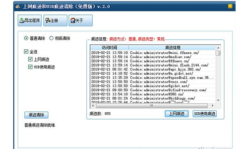 上网痕迹和USB痕迹清除工具根据用户的需求分为痕迹普通清除和彻底清除两种方式。
