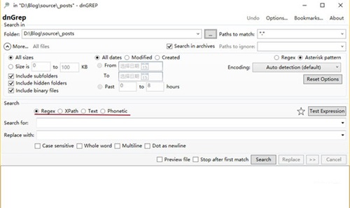 ??dnGrep官方版是一款操作简单方便的Windows文件内容查找工具。dnGrep官方版支持的文件格式包括:文本文件、word文档、PDF文件以及档案使用文本,支持Reges、XPath、Text、phonetic四种条件查询,查找结果清晰的显示在查找列表中,直观易读。