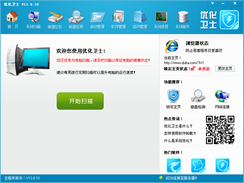 ??ChinaXV优化卫士官方版是一款功能强大的系统优化软件,ChinaXV优化卫士官方版运行速度快,不吃内存,拥有磁盘检测、软件管理、垃圾清理、启动管理、IE锁定、网络连接、进程管理等系统优化功能,修复方式简单。
