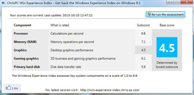 快速查阅在Windows 7/8/8.1中的"Windows 体验分数";