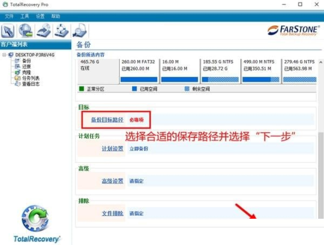 4,接下来选择备份镜像(大小约为20-30GB)的目标路径,根据个人需要选择即可,选择完成后点击“下一步”。